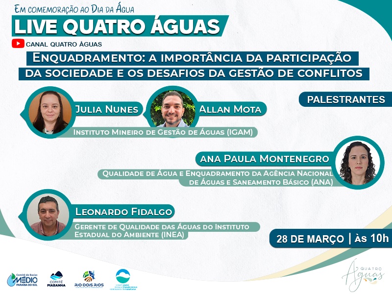 Live Quatro Águas: Comitês do Estado do RJ realizam evento online em comemoração ao Dia da Água